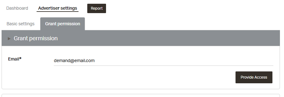 Once the Advertiser is created you can provide access to your demand partner in two ways: