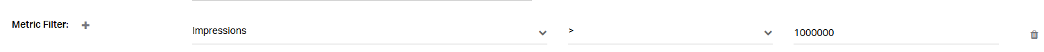 - Metric Filter: Click “+” to add metric conditions (e.g., show only when Impressions ≥ 10).