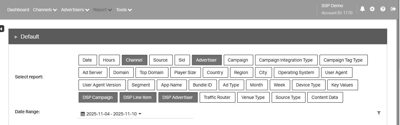 If you are using both the Ad Serving and DSP products, you can easily monitor performance across the two directly in your Ad Serving Reports.